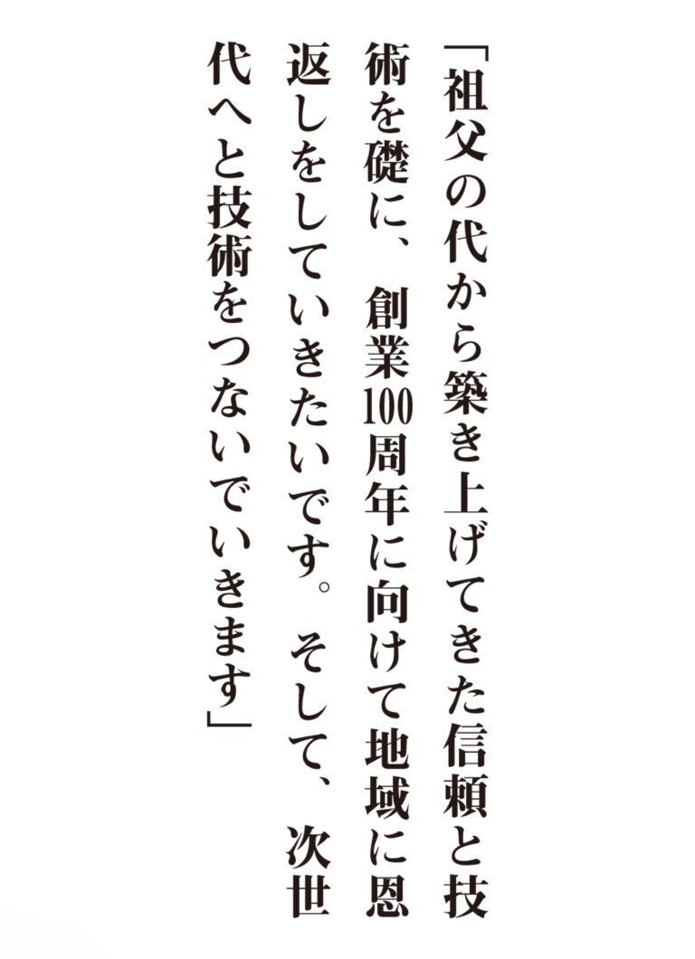 「創業100周年に向け、地域への恩返しと次世代への事業承継を実現したい」と語る同氏。地域密着と進化の両立を掲げ、さらなる飛躍を目指す同社に期待は高まるばかりだ。