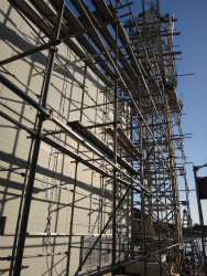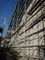 足場板が敷けないところは単管を二連にして足元を確保しました。