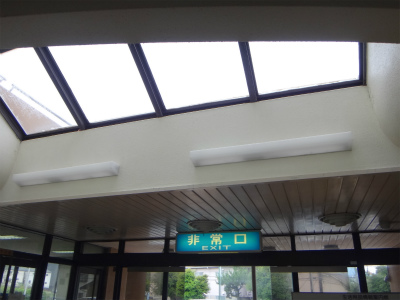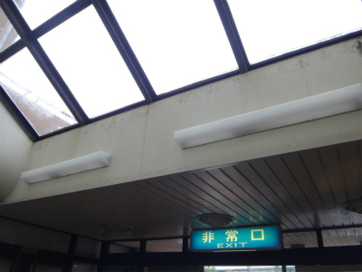 雨漏れでひどい状態だった明り取り部分は、事前に周辺のシール部分を打ち替えておいてから塗装。