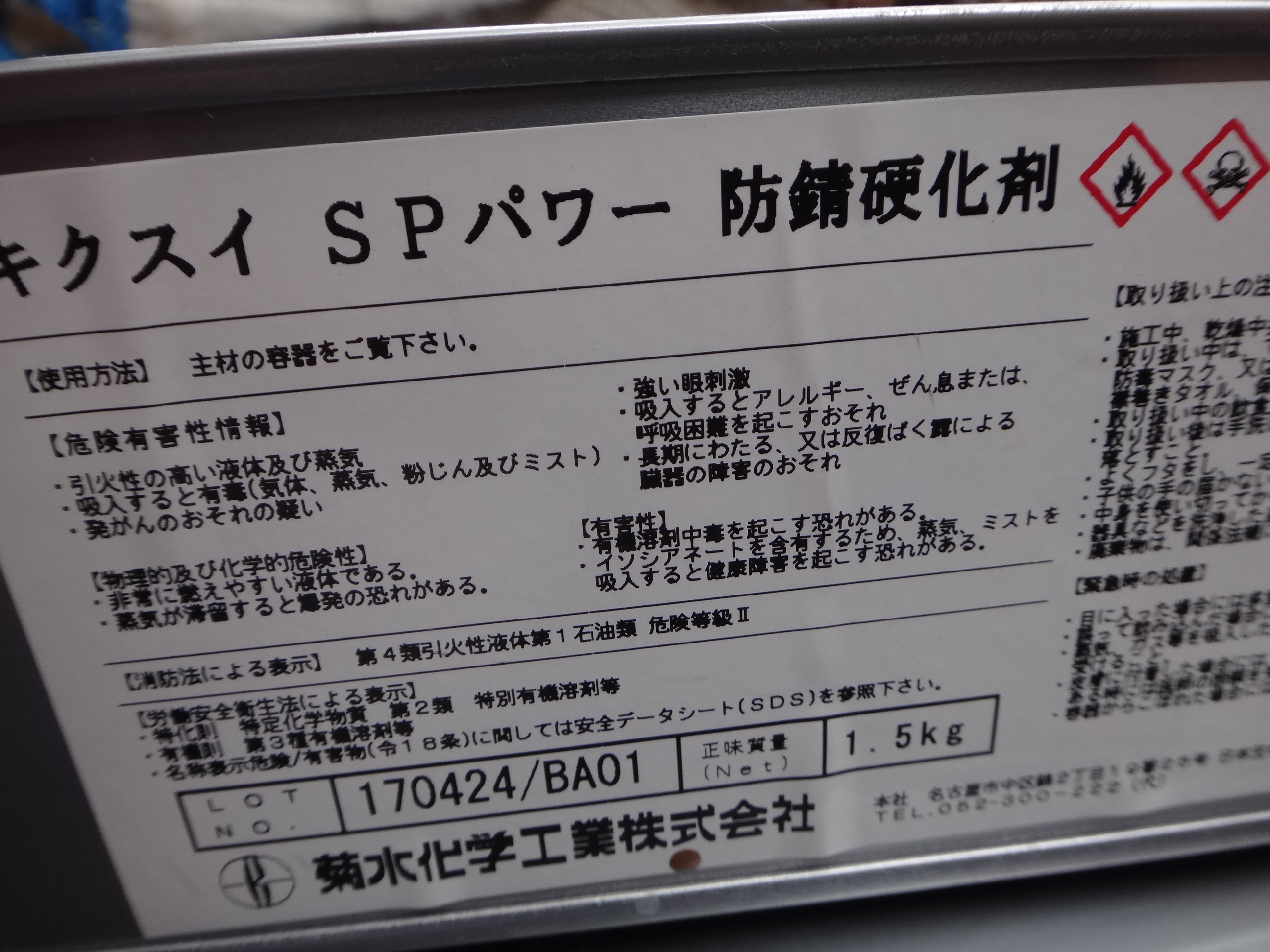 これまでも防錆効果を追加する添加剤はありましたが、硬化剤に防錆効果を組み込んだのはこれが初めてじゃないかな?