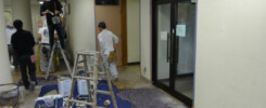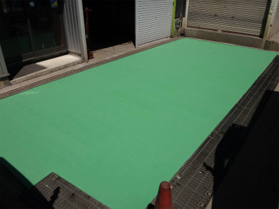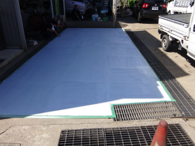 今回は自動車修理工場の床ですので、修理工場向けの床材を使用して工程に滑り止め用の砂まきが入ります。