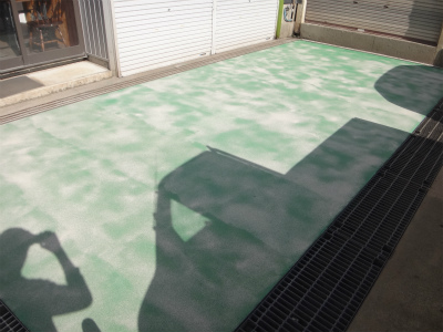 仕様では砂は1平方メートルあたり1.2キロとなってますが、ここは洗車もするのでそれよりも多く巻いてより滑り止め効果が出るように散布。