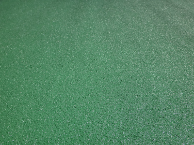 床材を厚みがつくように流し延べしたら、すぐに滑り止め用の砂を巻きます。