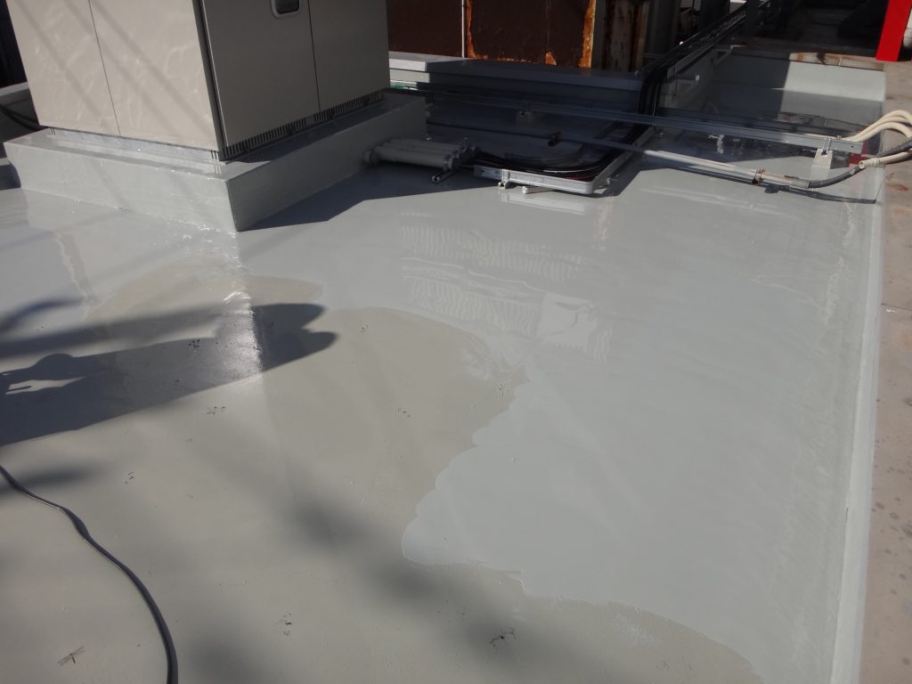 高圧洗浄後にキュービクルが置かれる部分を先行して防水。