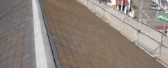 この屋根片側はまあ経年なりの汚れなんだけど、もう片側は一面コケだらけ